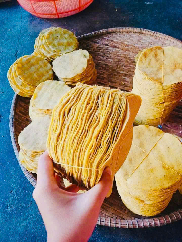 - Đặc điểm: Bánh tráng khoai lang có màu vàng nhạt tự nhiên của khoai lang, hương vị thơm ngon, ngọt bùi. Đặc biệt không chứa chất phụ gia và chất bảo quản