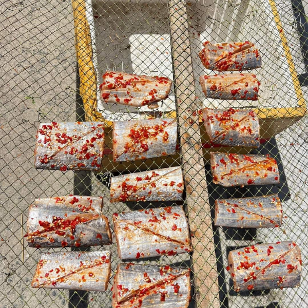 Cá hố, gia vị, ớt, muối, phơi nắng