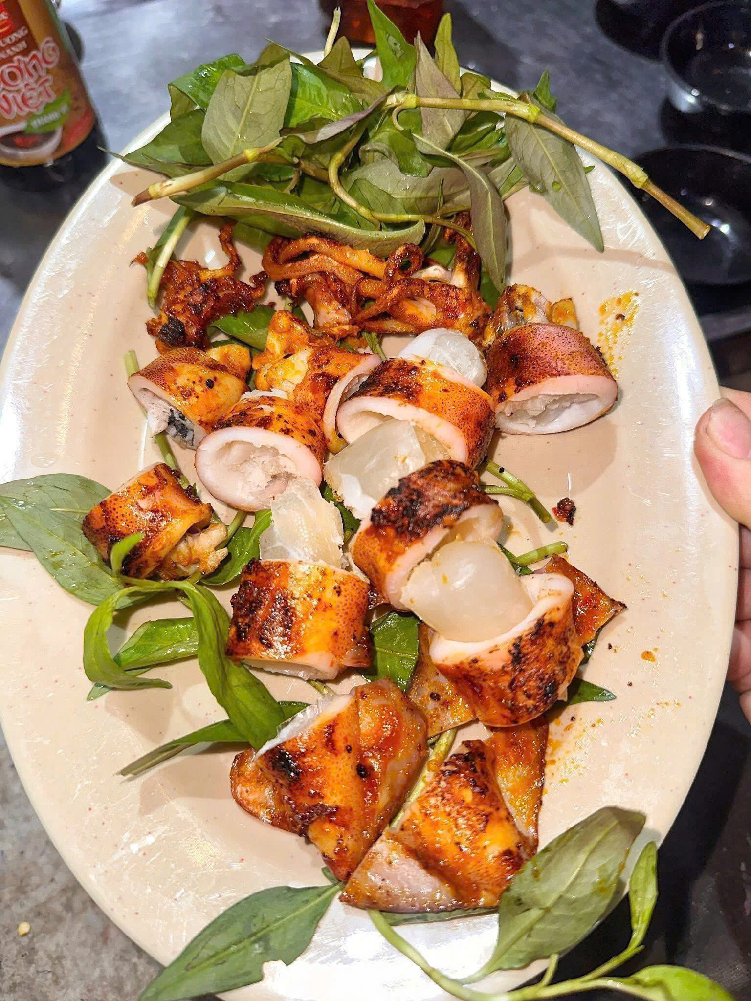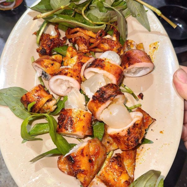 Nướng: Nướng mực ống với gia vị như ớt, tỏi và dầu oliu để tạo nên hương vị đậm đà.