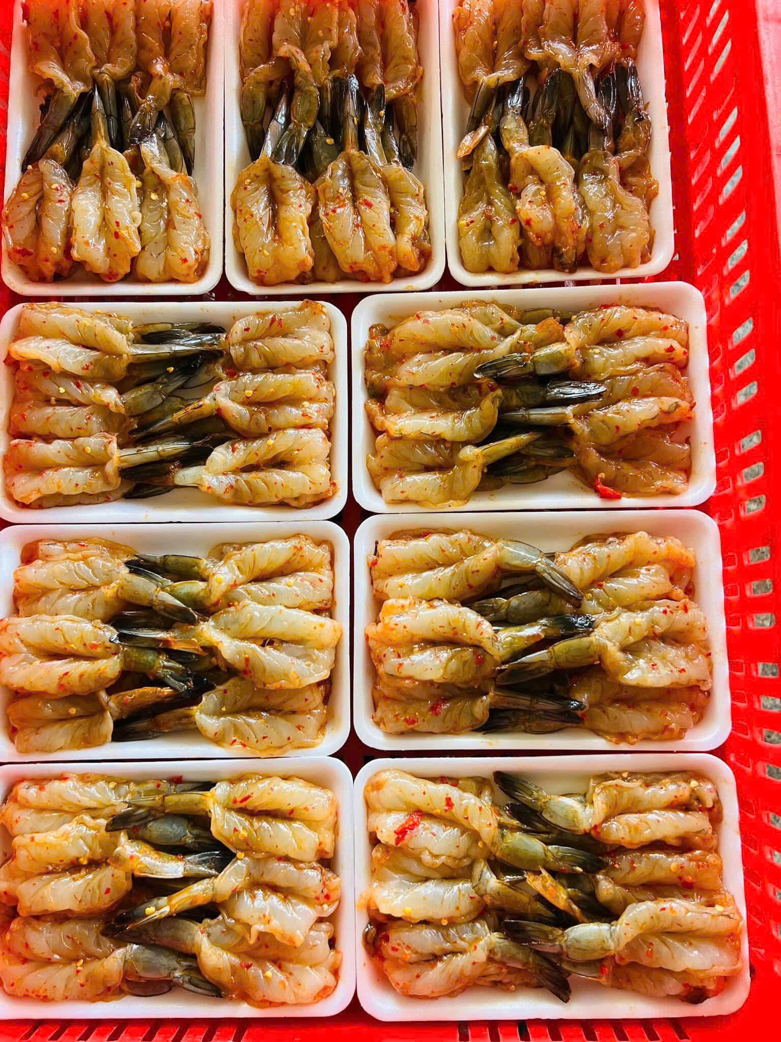 Tôm, gia vị cần thiết, ớt, phơi nắng